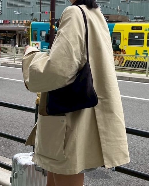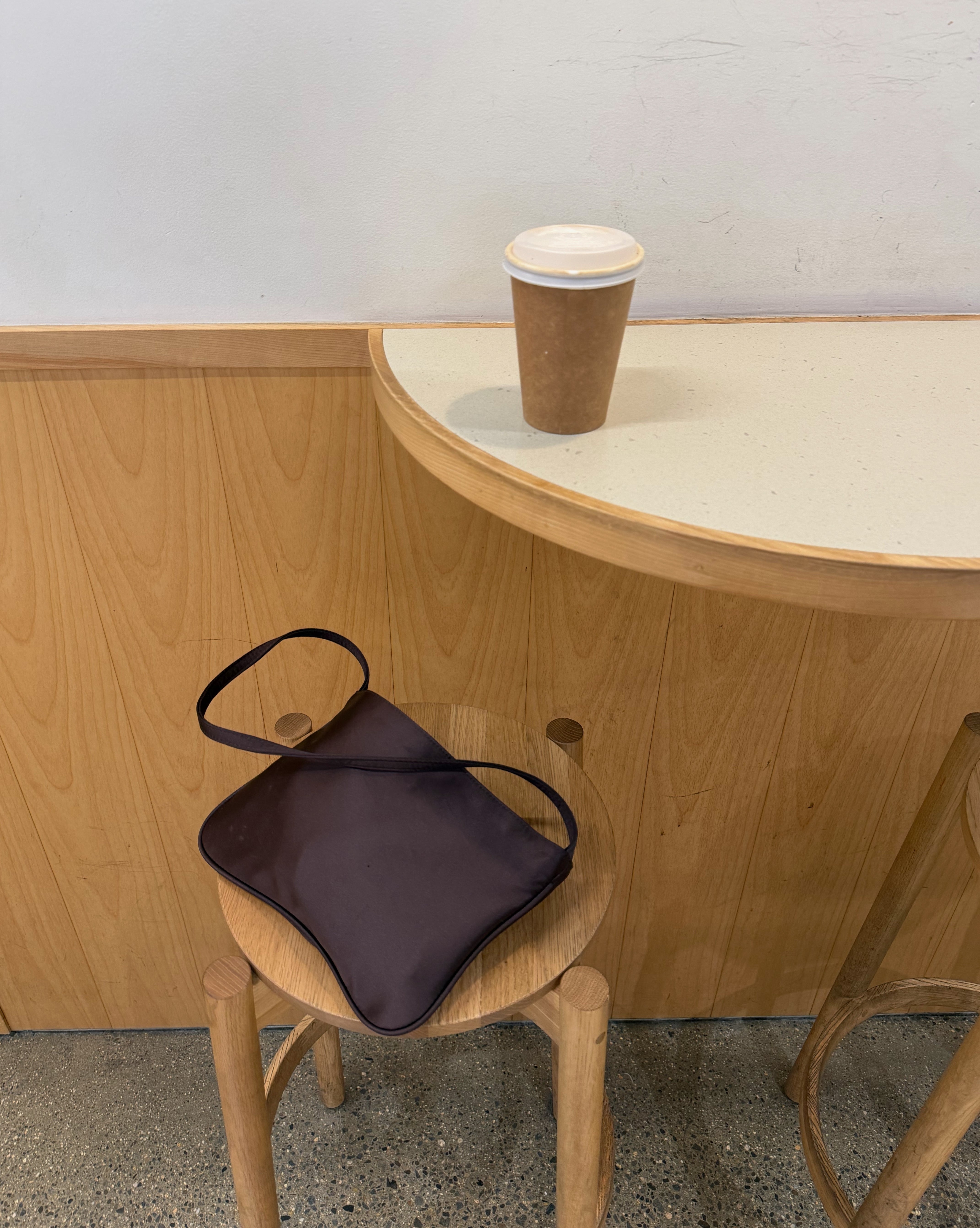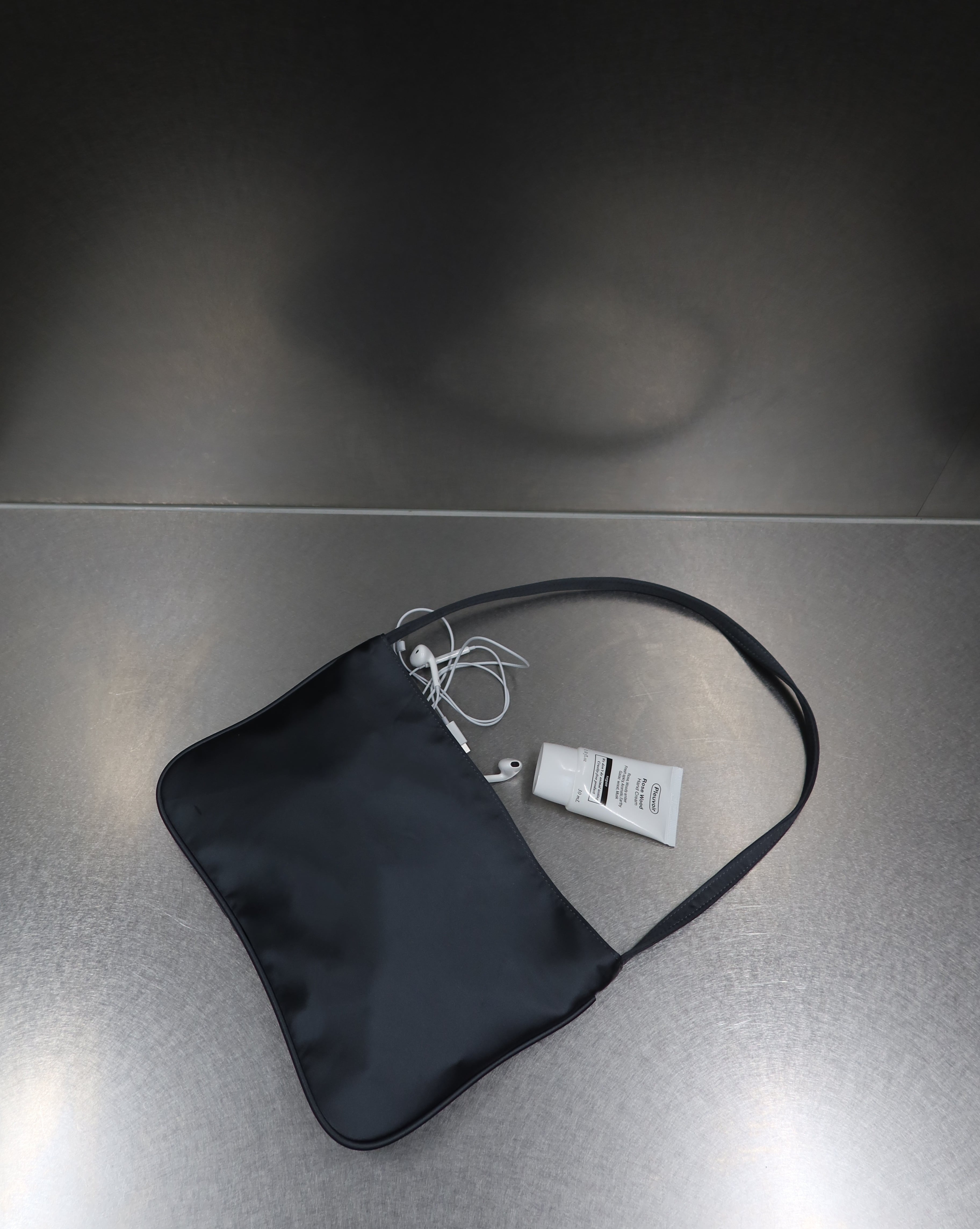 サテン素材のシンプルに仕上げたショルダーバッグ。